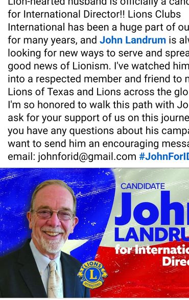 Lion John Landrum has served proudly as a Lion since April 1984. He began his dedication to service with the Hillsboro Lions Club in District 2-X3. He served the Hillsboro Club as President, Vice President, Treasurer, Director, and was twice named their “Lion of the Year.” While in District 2-X3 he also served as a Zone Chair.